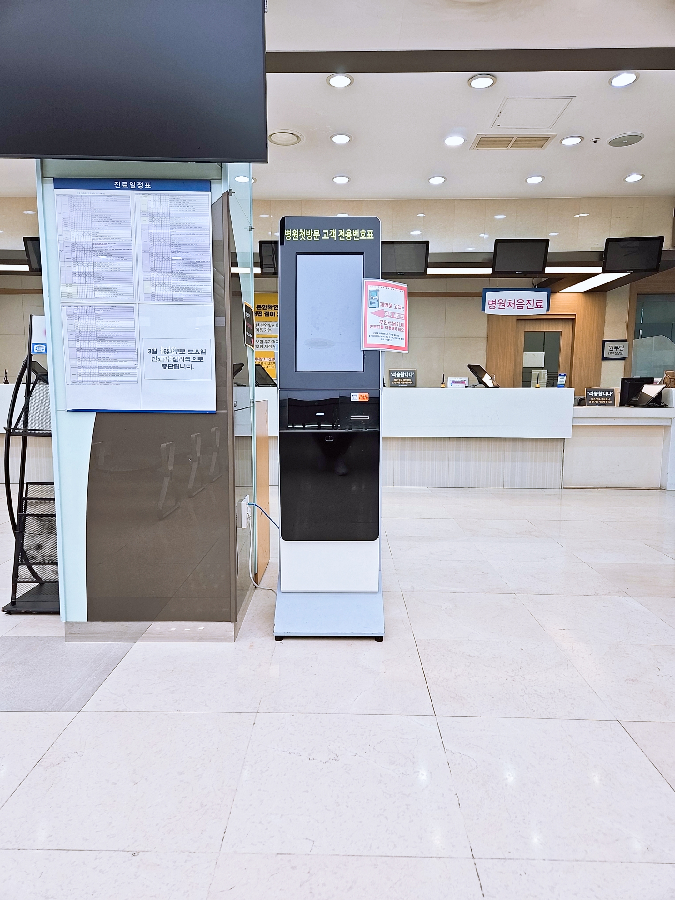 그런데 나는 아이가 초진이라.. 이 번호표 뽑아봤자라는 글을 봐서 둘러보니 병원 처음 진료는 번호표 기계가 따로 있고 이 기계는 6시 30분이 아니라 7시부터 가능하다고..