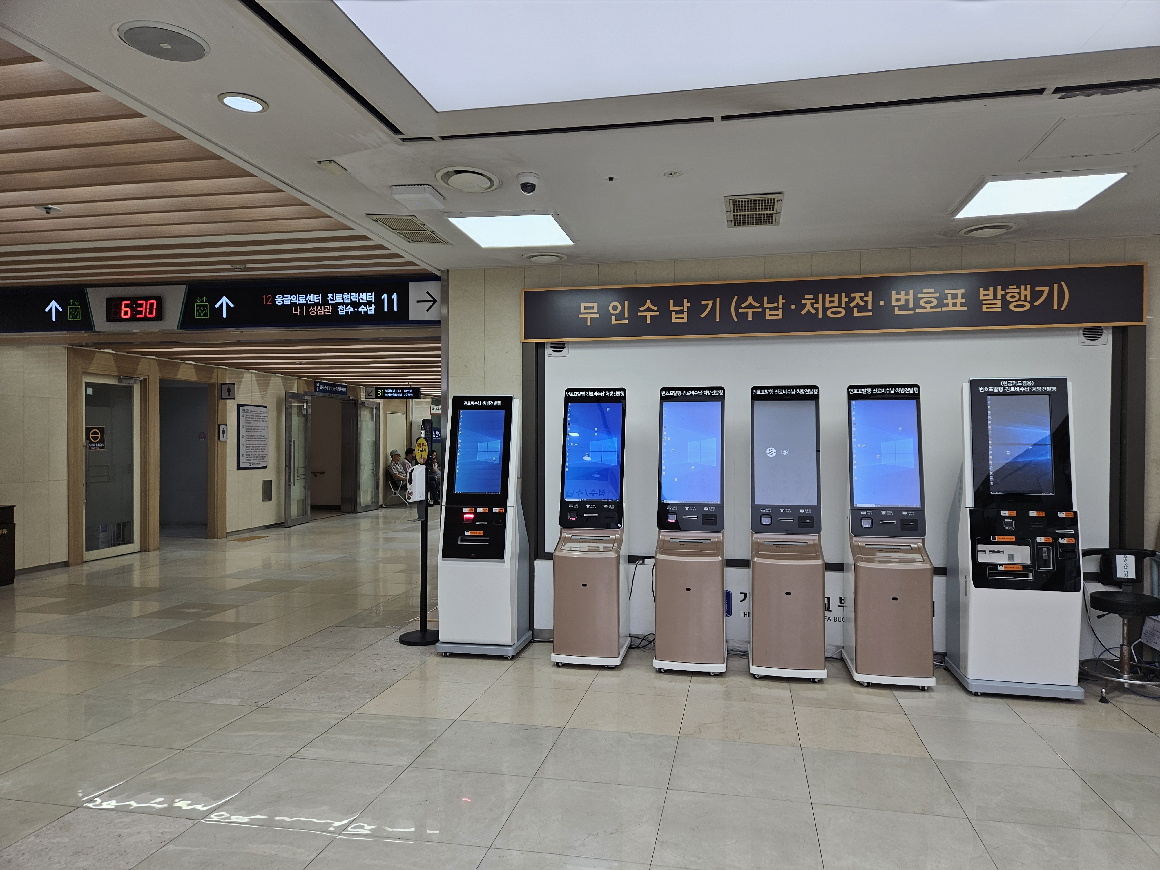 그런데 나는 아이가 초진이라.. 이 번호표 뽑아봤자라는 글을 봐서 둘러보니 병원 처음 진료는 번호표 기계가 따로 있고 이 기계는 6시 30분이 아니라 7시부터 가능하다고..